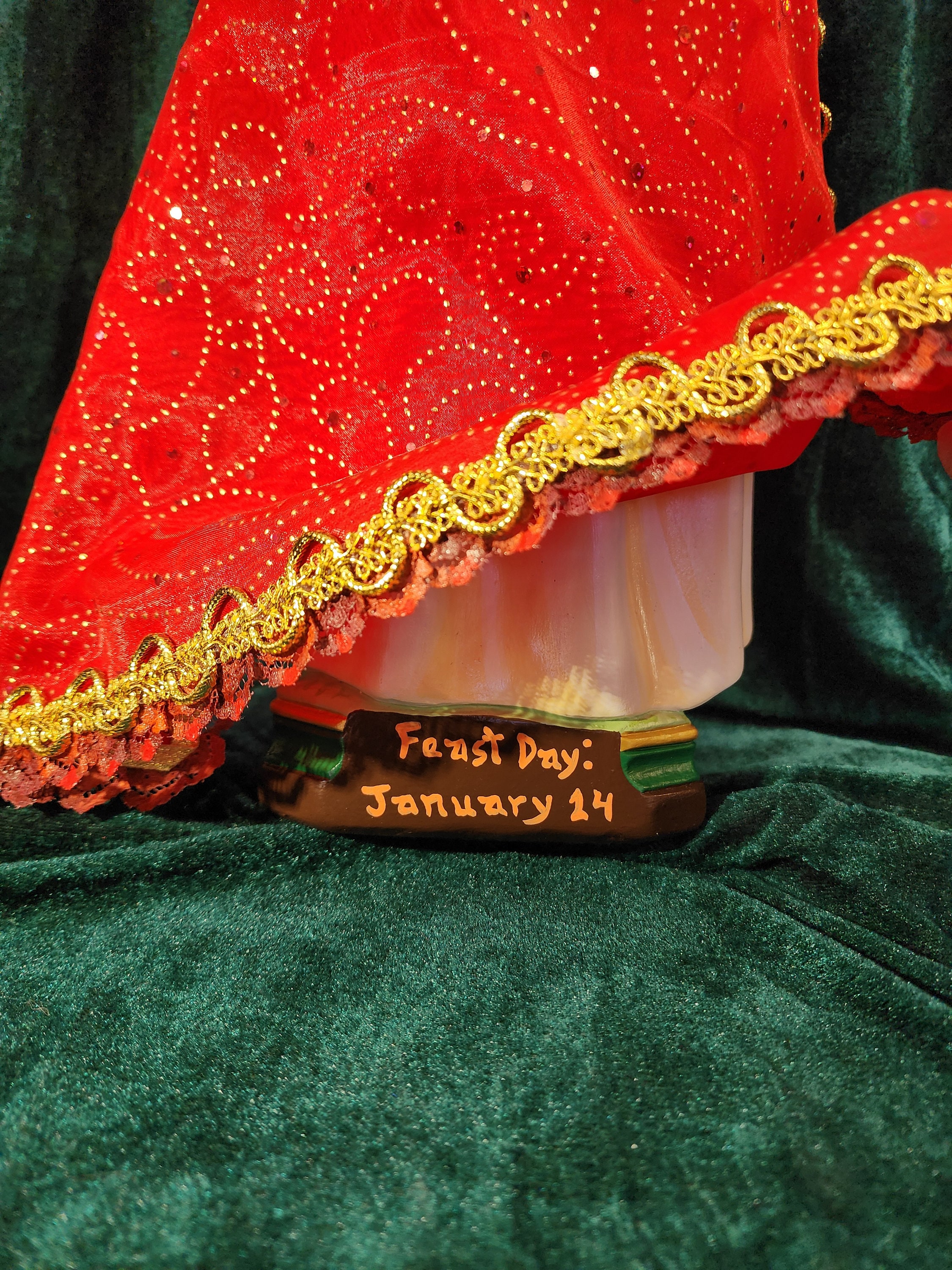 • IMPRINTS - Feast and name of statue imprinted on the base . Veneration includes remembering and honoring the feast day.