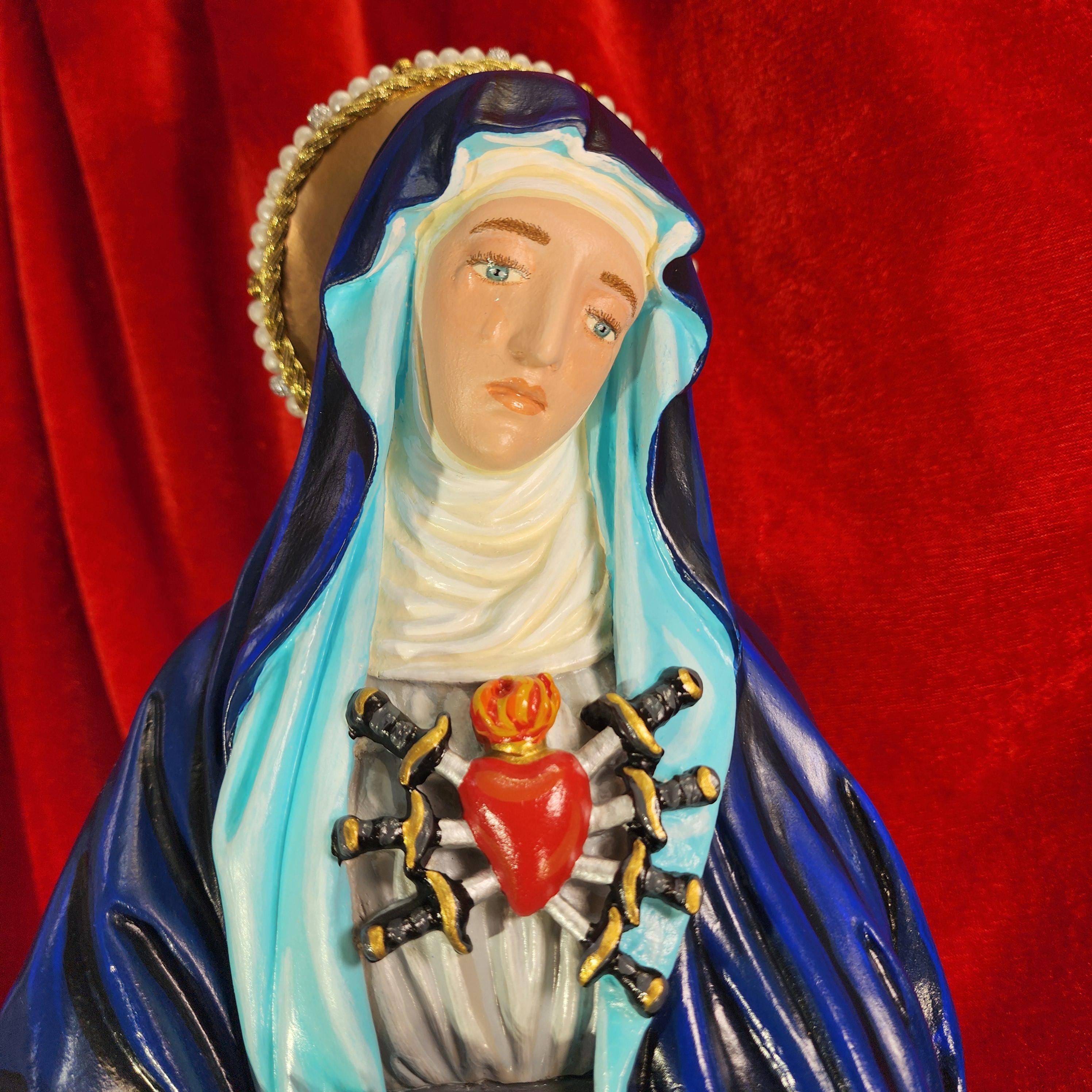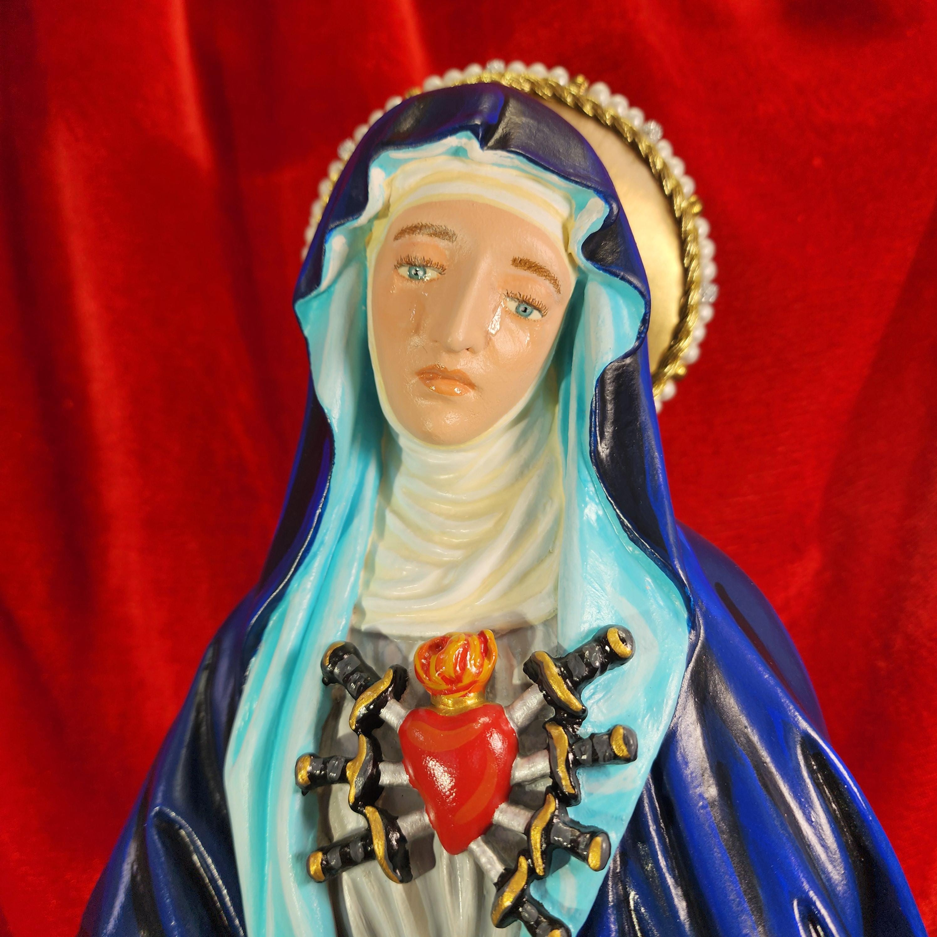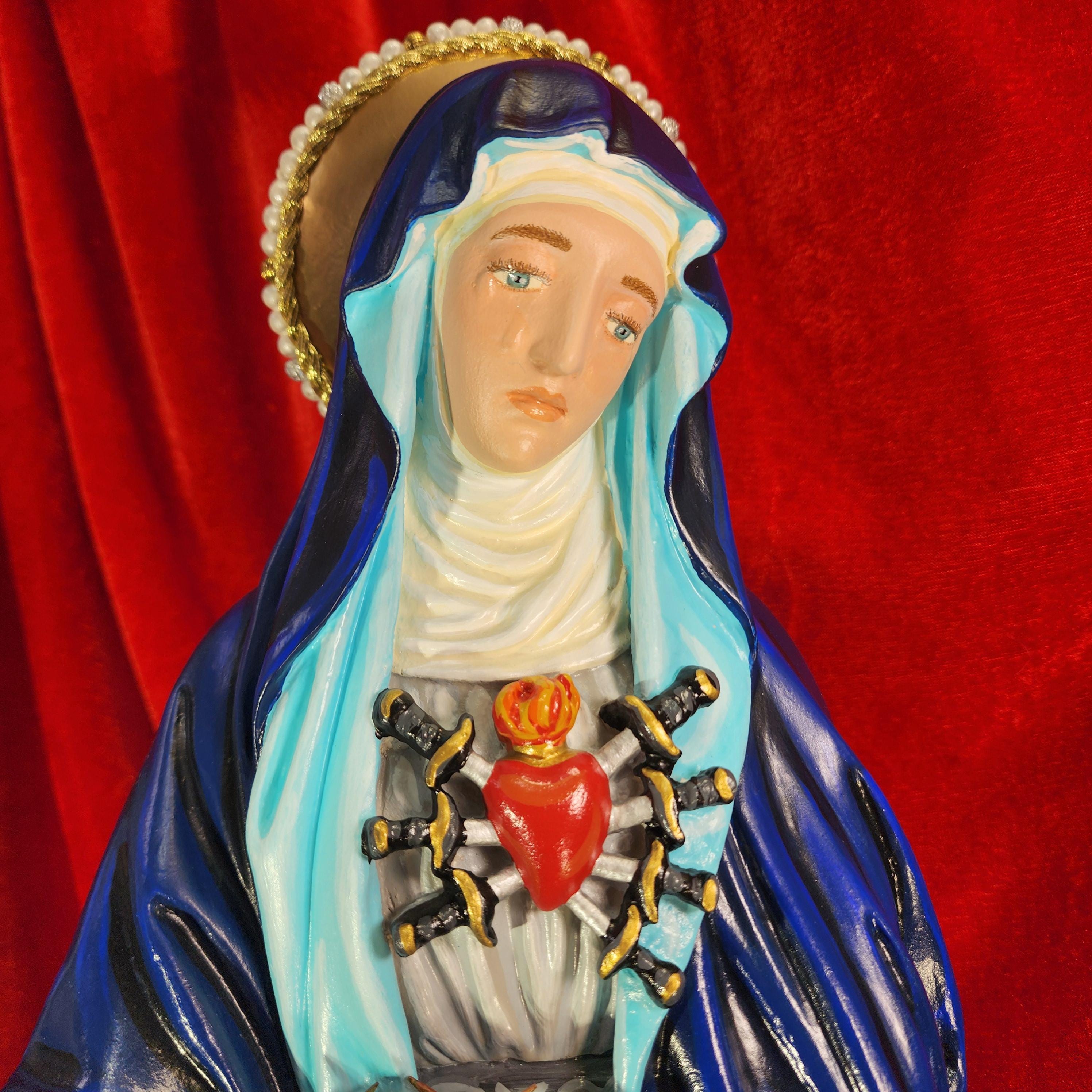 Absolutely stunning Our Lady of Sorrows statue. The fine detail work on every aspect of the figure is amazing. In particular, the delicately painted facial expression captures the very essence of grief. The piece is truly a work of art. I must also compliment the very secure packing of this fragile item. The statue arrived in flawless condition.