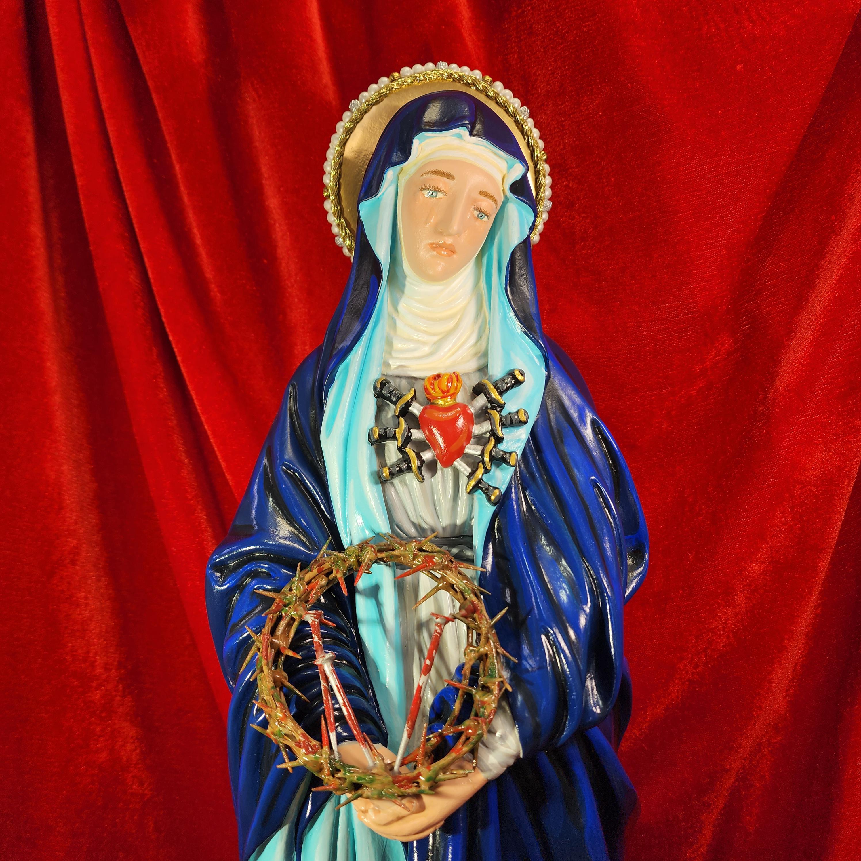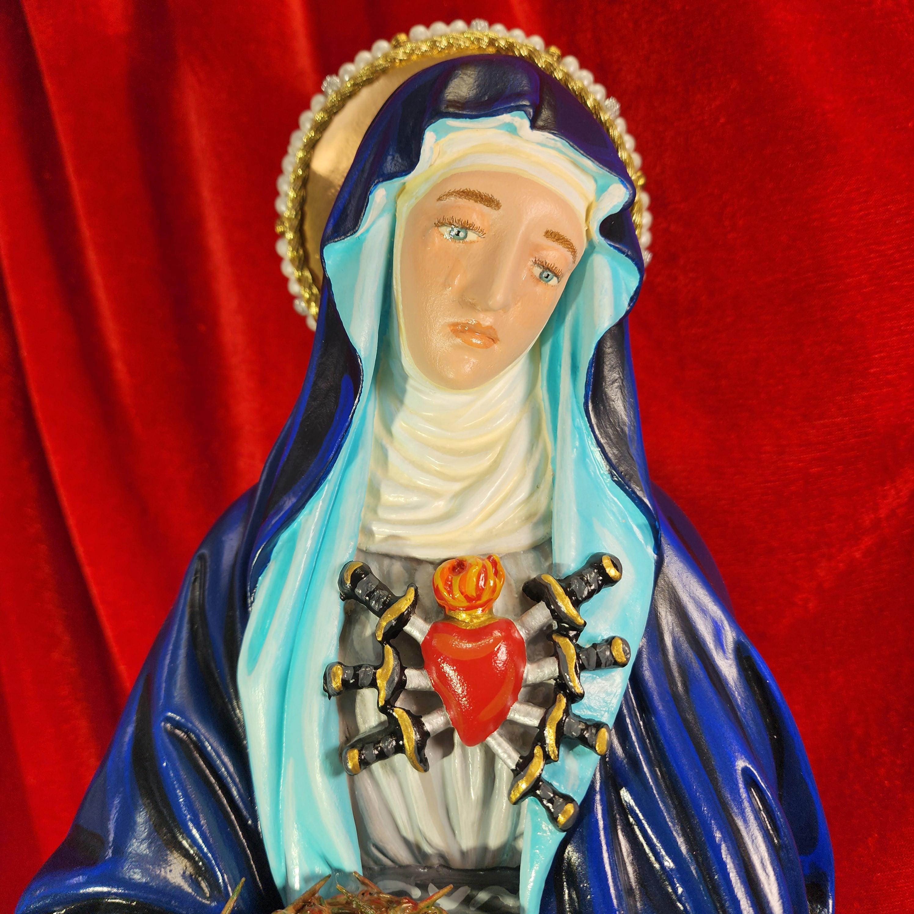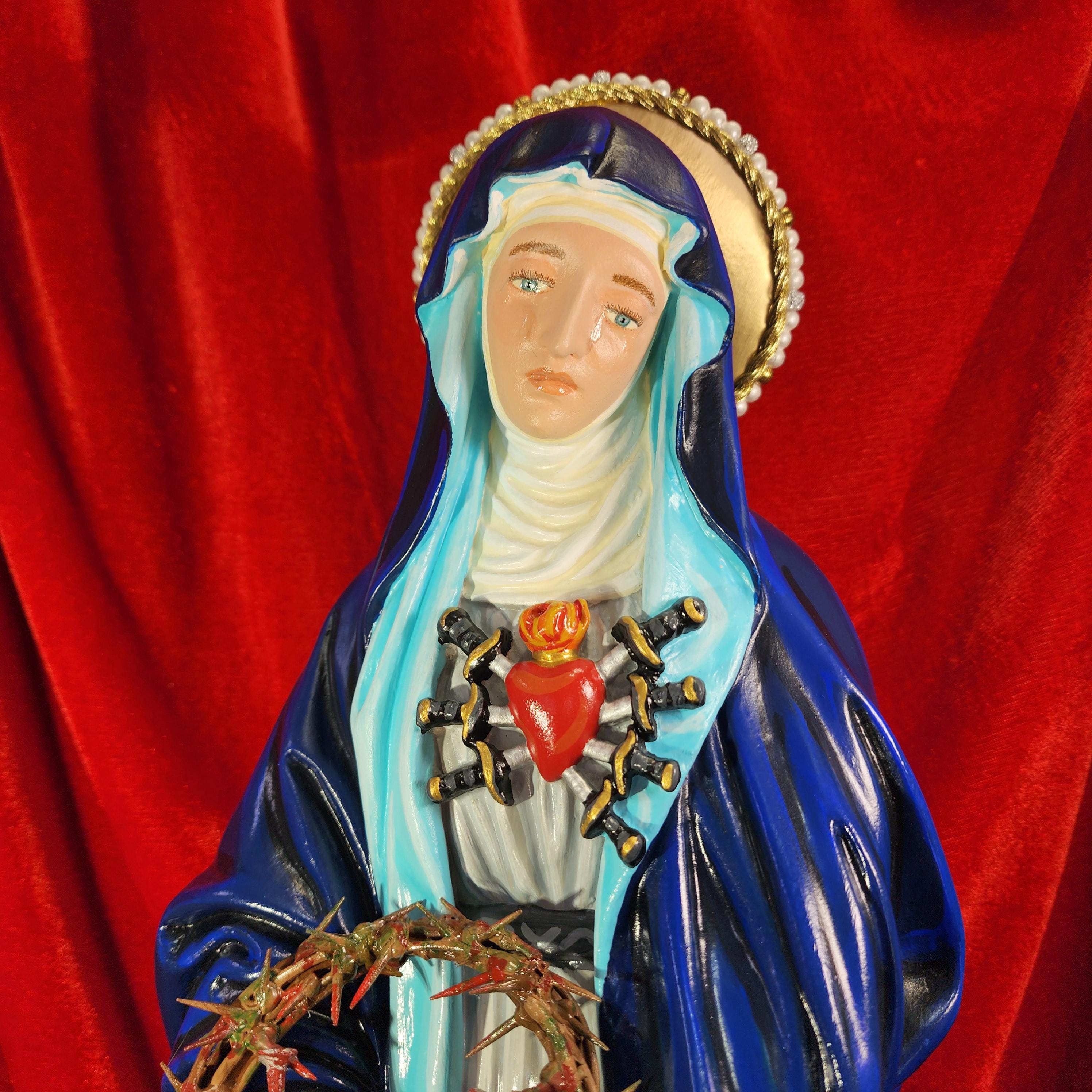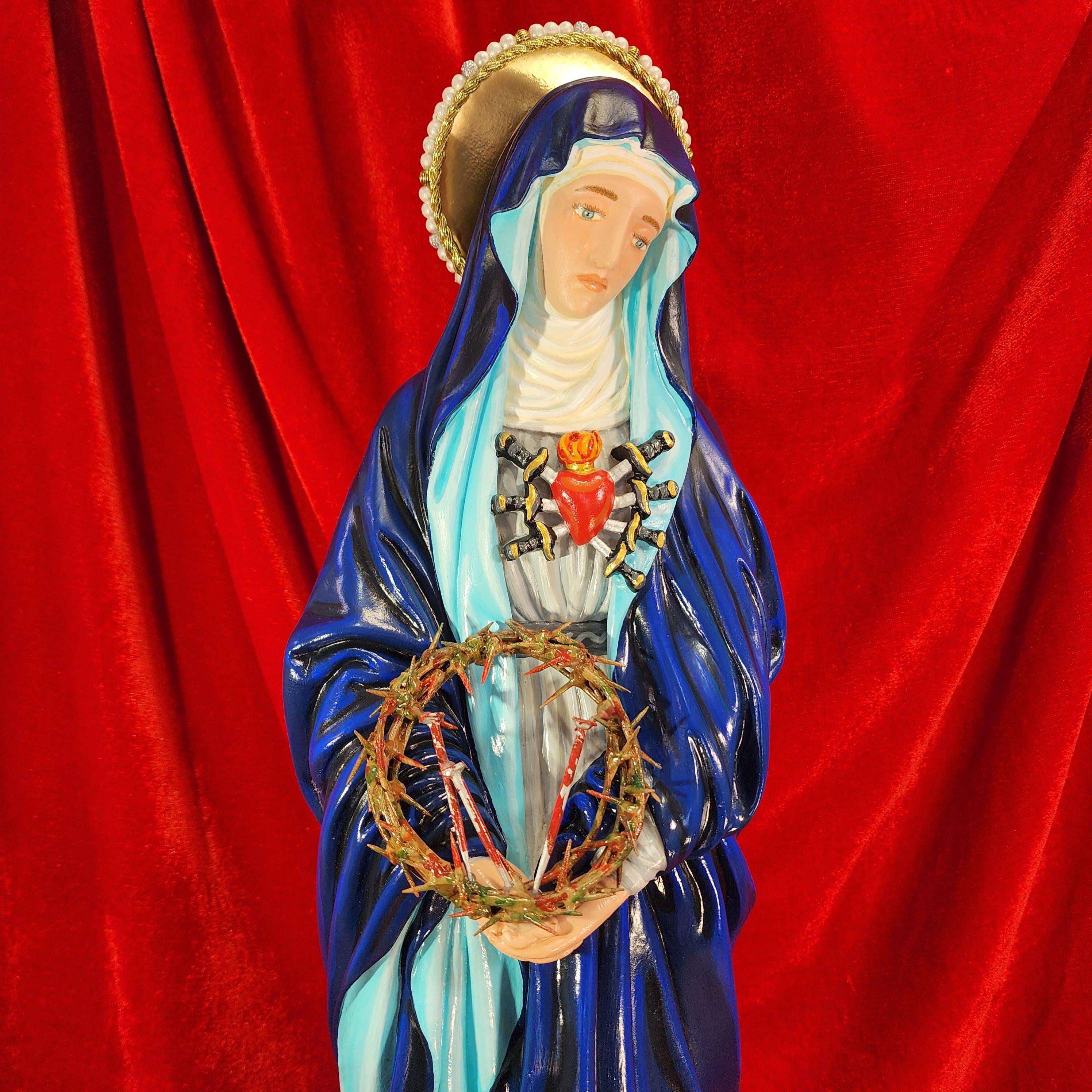Absolutely stunning Our Lady of Sorrows statue. The fine detail work on every aspect of the figure is amazing. In particular, the delicately painted facial expression captures the very essence of grief. The piece is truly a work of art. I must also compliment the very secure packing of this fragile item. The statue arrived in flawless condition.