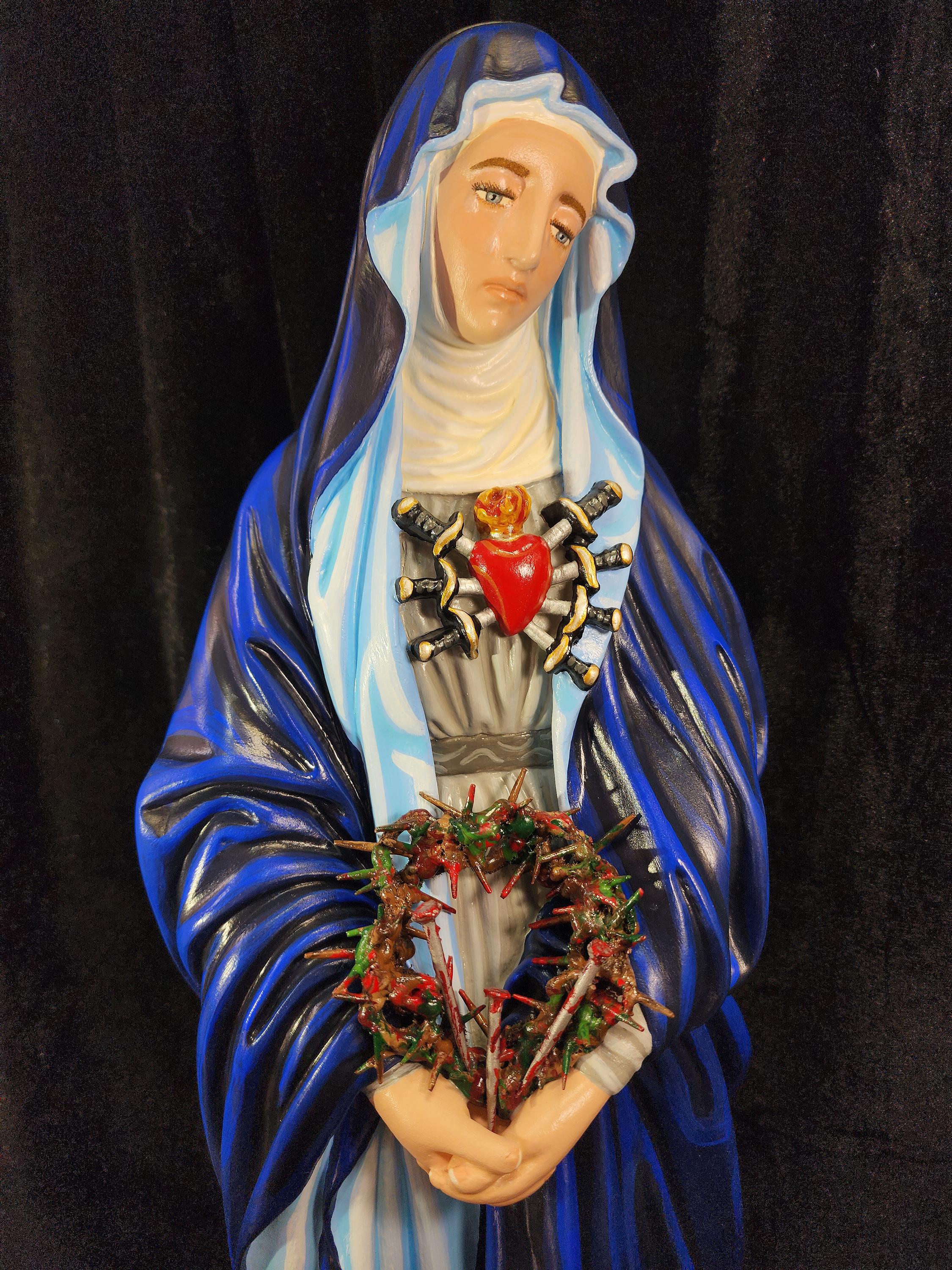 Absolutely stunning Our Lady of Sorrows statue. The fine detail work on every aspect of the figure is amazing. In particular, the delicately painted facial expression captures the very essence of grief. The piece is truly a work of art. I must also compliment the very secure packing of this fragile item. The statue arrived in flawless condition.