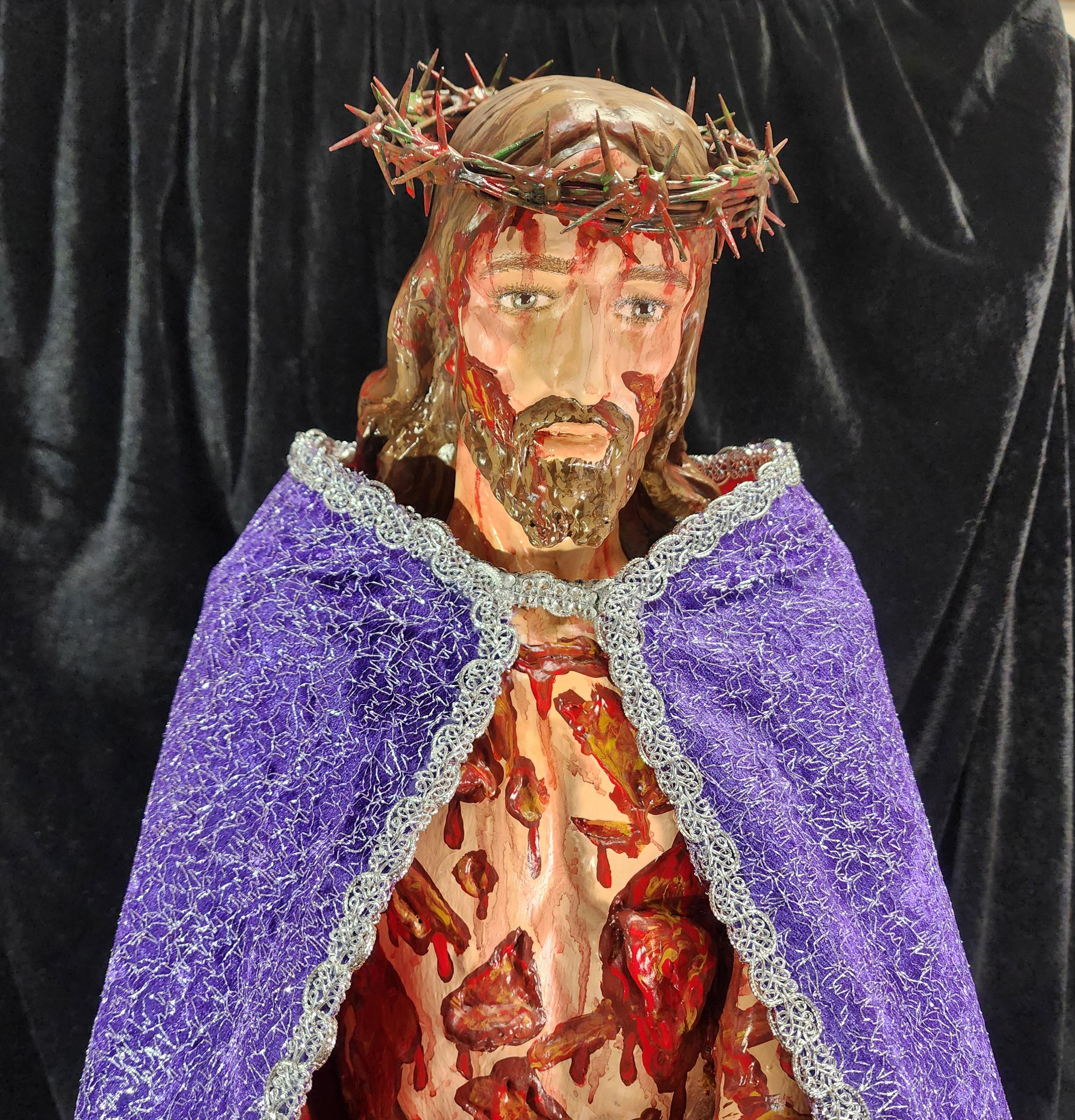 Statue shown with a wrist rope and a removable crown of thorns. It will also come with a Beautiful (GLORIFIED VERSION) Cloak.
